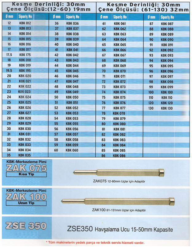 DERİNLİK:30 MM, ÇAP: 12-130 MM